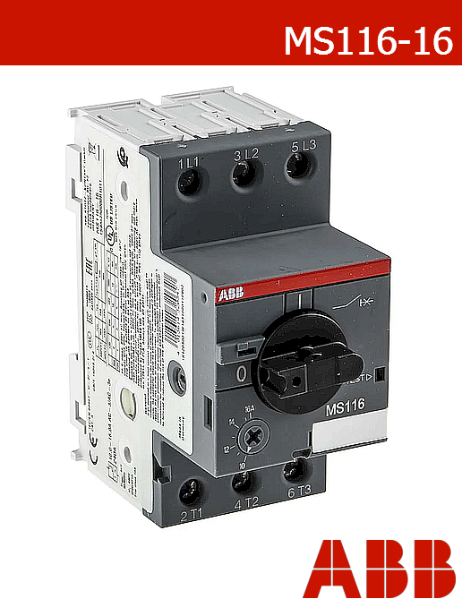 Моторна защита ABB MS116-16 – трифазна 400V AC до 7.5kW | 10–16A
