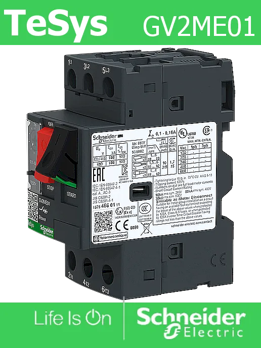 Schneider Electric GV2ME01 е високопроизводителен термомагнитен прекъсвач, проектиран да осигури цялостна защита на двигател до 0.03kW от претоварване, късо съединение и отпадане на фаза. Този 3P прекъсвач е ключов компонент за надеждна и безопасна работа на трифазни електродвигатели в индустриални и автоматизирани системи.